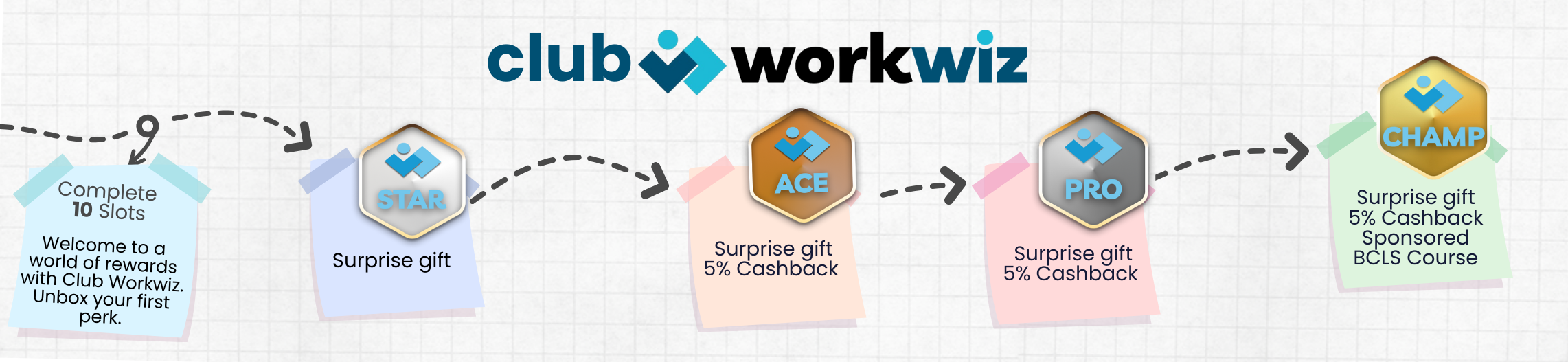 Complete 10 slots and welcome to a world of rewards with Club Workwiz. Unbox your first perk!